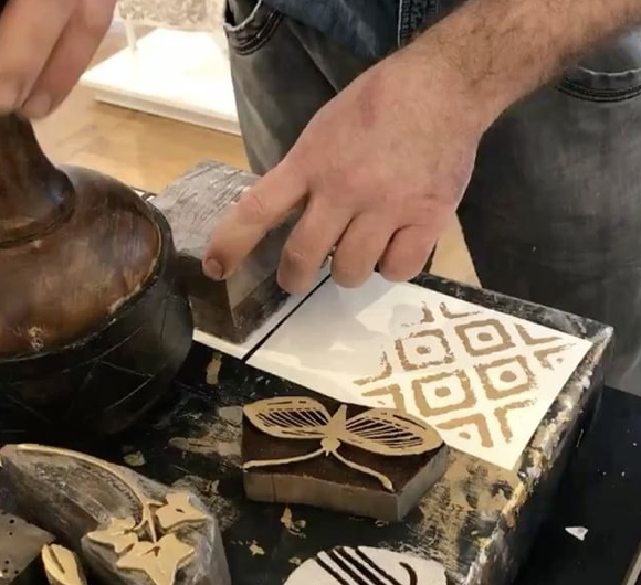 TRIANONHand Blocked Print using Hand-Carved Wood Blocks